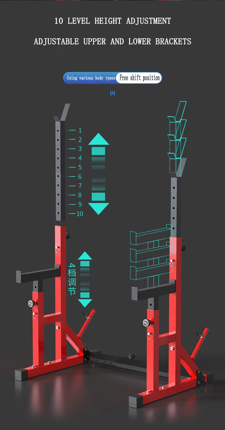 The stand features a reinforced steel frame structure that provides excellent load-bearing capacity and long-term stability during heavy lifting sessions. Its design focuses on user safety, precise bar positioning, and efficient training workflows, making it suitable for professional strength training environments rather than consumer-level home use. Compared with retail-grade equipment, C-W07 Weightlifting Stand offers higher material specifications and improved structural reliability.